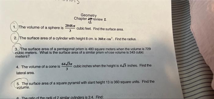 Solved Geometry Chapter De Review 2 12 The Volume Of A Chegg Com